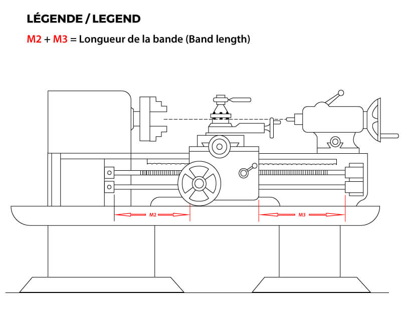 - Calculez M2 + M3 pour déterminer la longueur de bande nécessaire pour votre tour