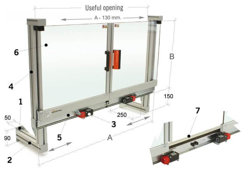 - Maximum safety: built-in dual microswitch interlock blocks machine start if the guard is open (compliant with OSHA / ANSI / ISO-EN / CE)
