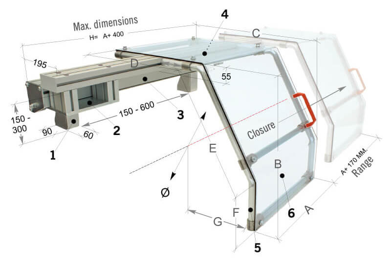 Sa structure en acier tubulaire et aluminium combine robustesse et légèreté, tandis que son écran transparent épais, résistant aux chocs et à l’huile, assure une protection durable sans compromettre la visibilité de la zone de travail.
